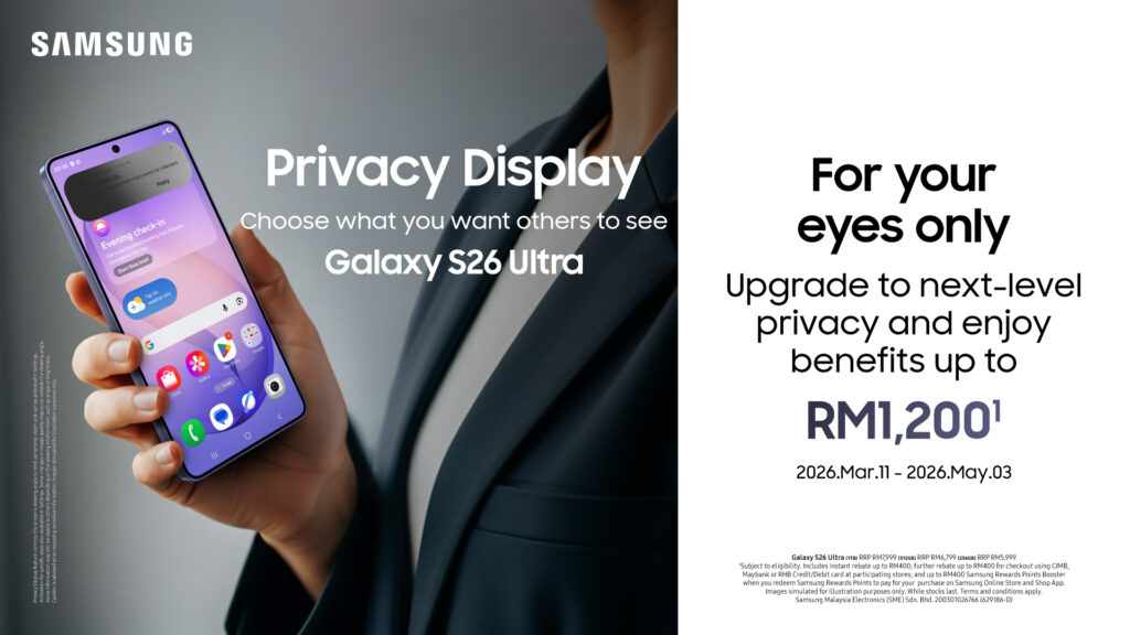 Until 3 May 2026, the Galaxy S26 series is available for purchase with these amazing promotions. Get a rebate of up to RM400 upon purchase of the Galaxy S26 Series. Customers can also get a rebate of up to RM400 upon purchase with eligible CIMB, Maybank or RHB credit or debit cards. Customers can also redeem up to RM400 with their Samsung Rewards Points Booster for their purchase as well!