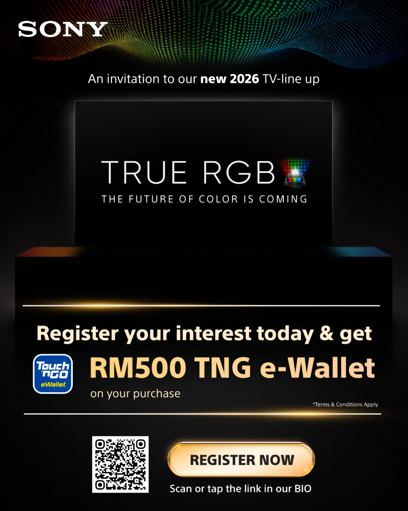 Register your interest now and receive a RM500 Touch ‘n Go voucher, which you can claim upon purchasing a Sony TV.